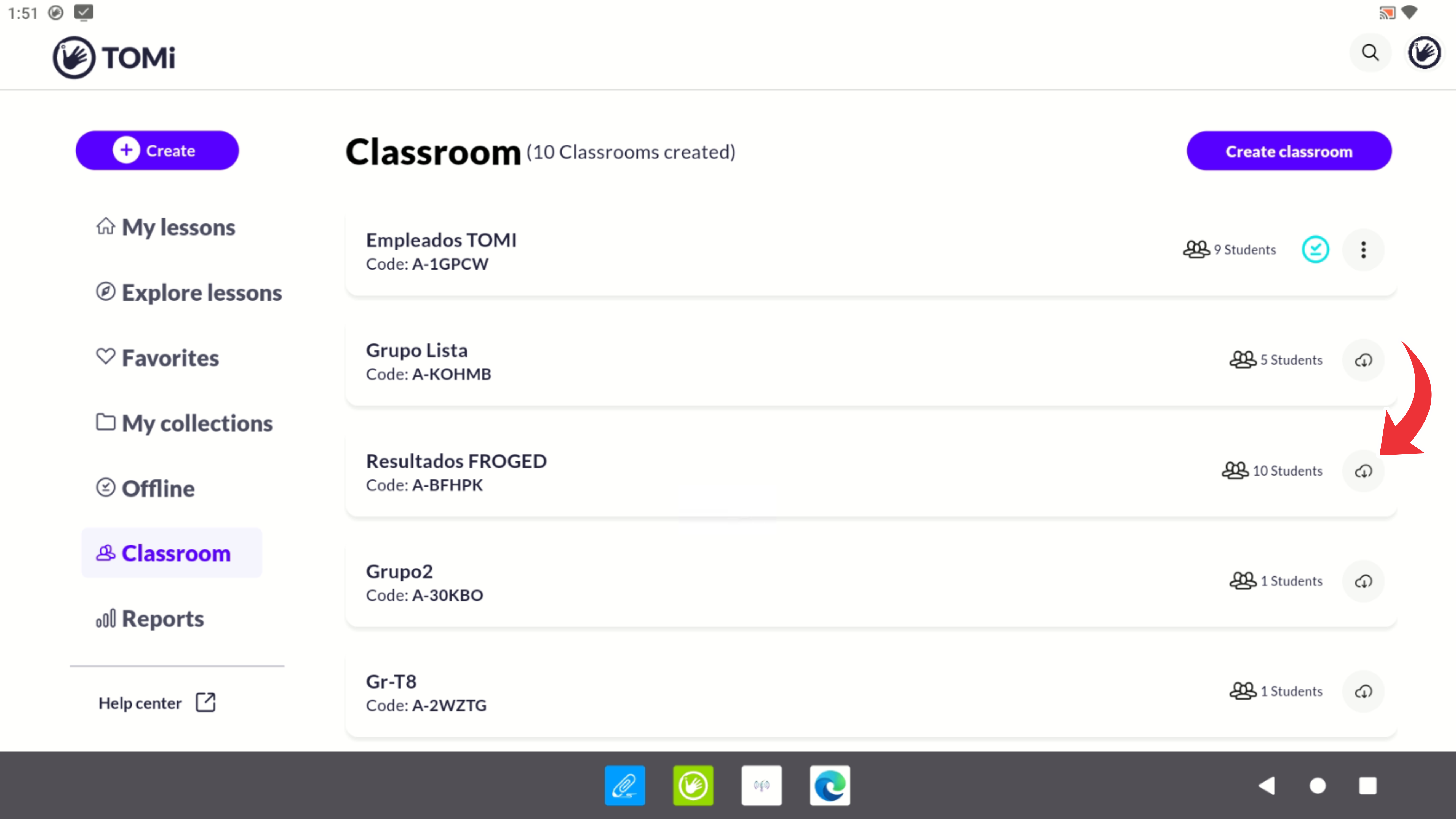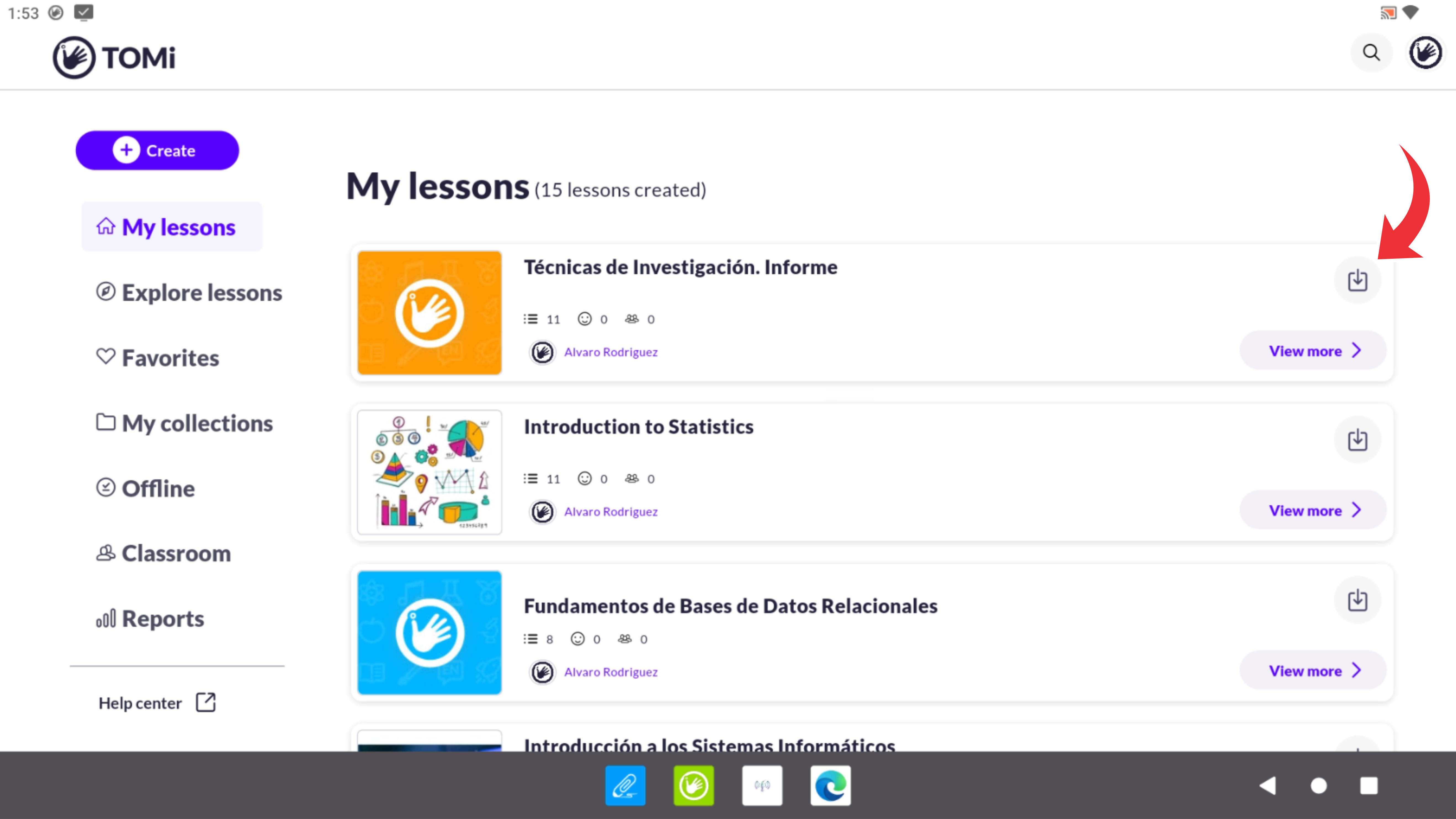 At the same time, we must also download the class we will be working with. Go to the 'My Classes' or 'Explore Classes' option and press the download icon on the right side of the class you want to download.