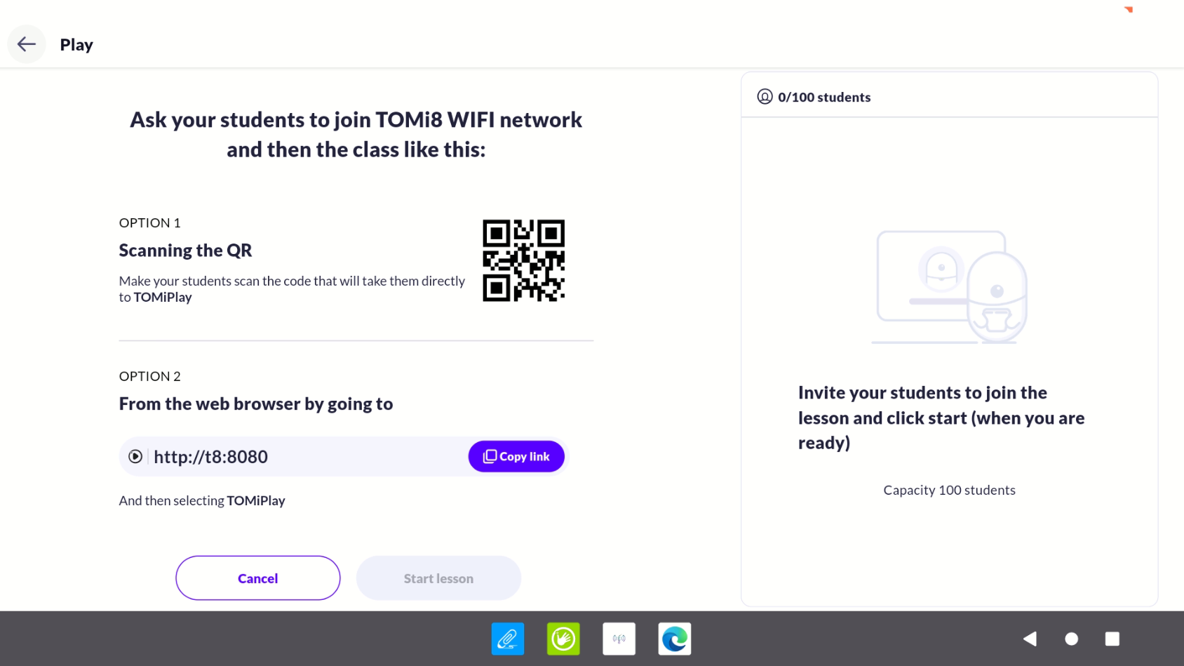 4. Here, we need to instruct the students to connect to the Wi-Fi network of our TOMi8 device. Once connected, they can join the class in two ways: