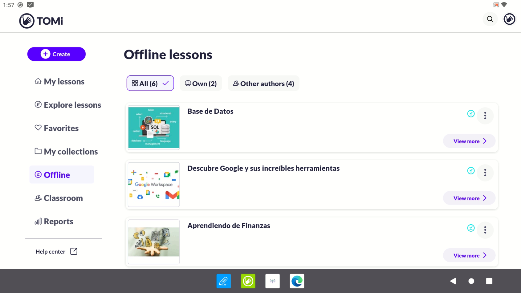 2. Once we have completed the previous steps, go to the 'Offline' option, where we will find all the classes we have downloaded to work offline, both our own and those from other authors.
