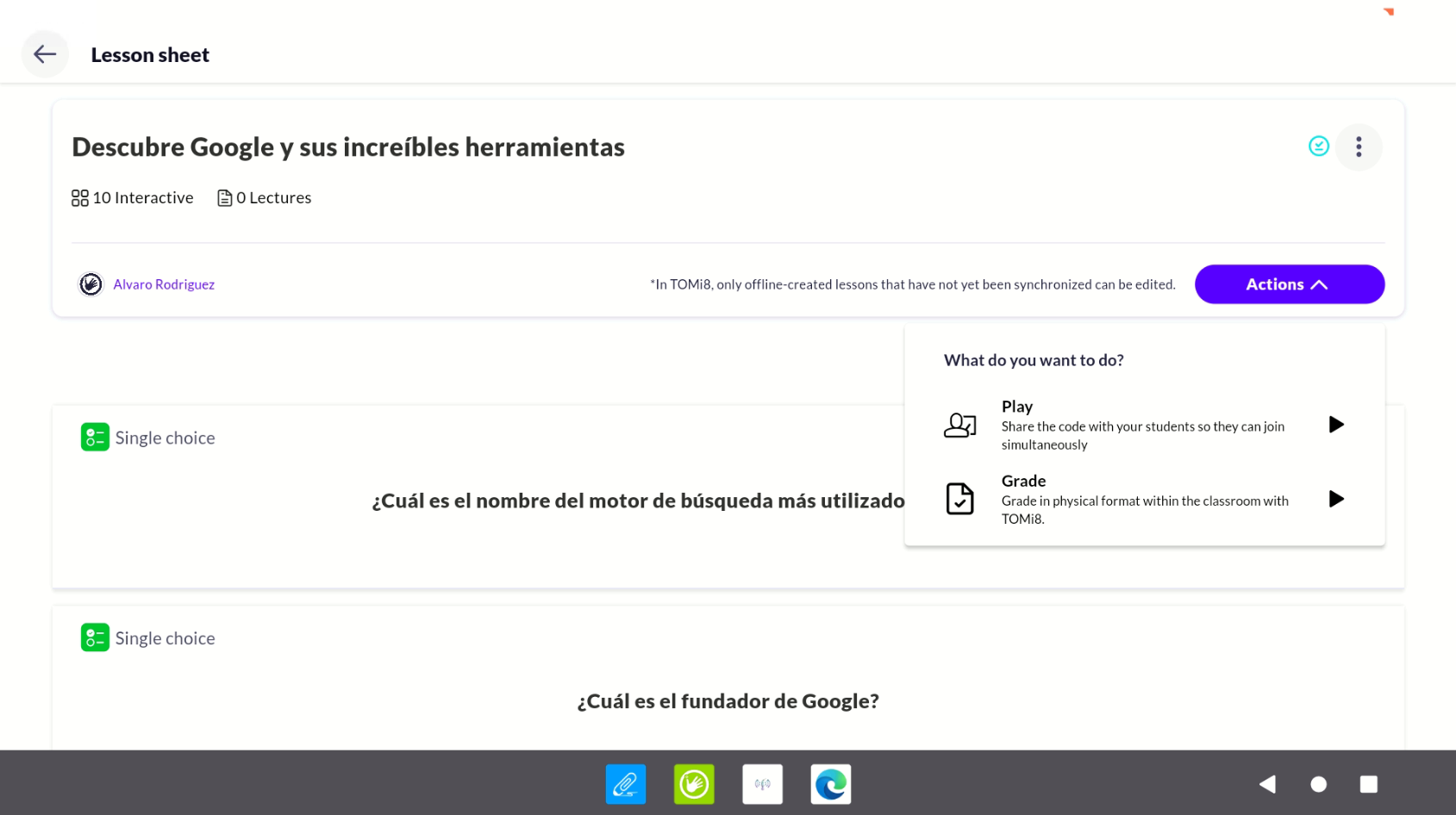 3. Select the class we have downloaded to see more options and locate the Actions button. Here, we can choose whether we want to Present or Grade the class. Select Play.