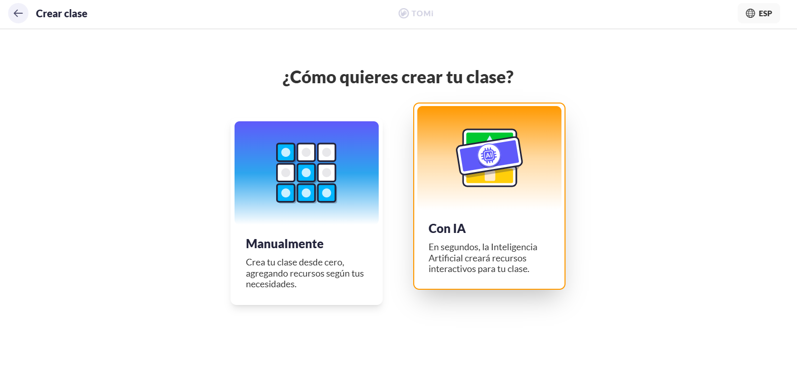 3. Escoge la opción Con IA para crear tu clase en segundos.