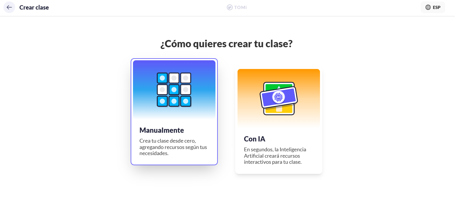 3. Escoge la opción Manualmente para crear tu clase desde cero.