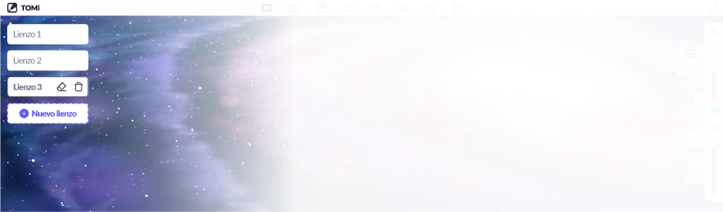 Una vez que instales TOMi Whiteboard, verás un asistente en el lateral de tu pantalla. Este asistente te da acceso rápido a herramientas esenciales.
