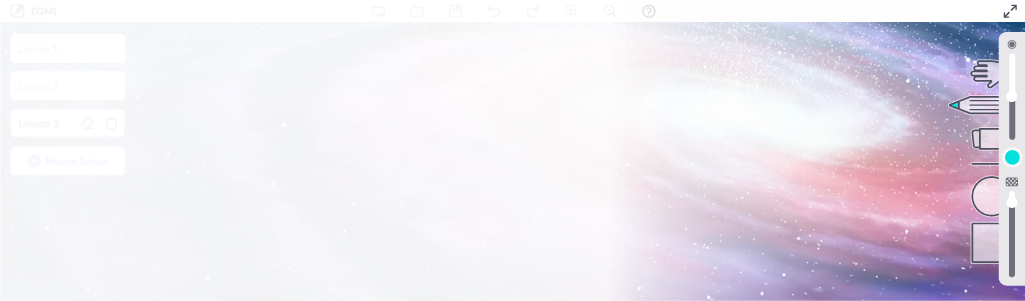 Depois de instalar o TOMi Whiteboard, você verá um assistente na lateral da tela. Ele dá acesso rápido às ferramentas principais:
