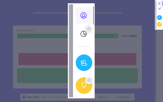 Ahora al momento de presentar una clase en línea podrás acceder a las herramientas de la clase, las cuáles están ubicadas en la parte derecha.